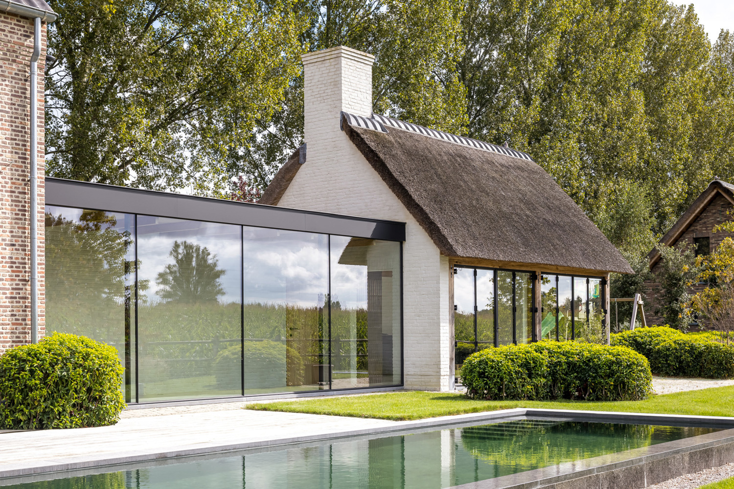 Het resultaat is een modern woonhuis waarbij de traditie op een respectvolle manier wordt geïnterpreteerd, de stille dimensie van het landschap als toegevoegde waarde wordt ervaren en ultiem wooncomfort wordt geboden.