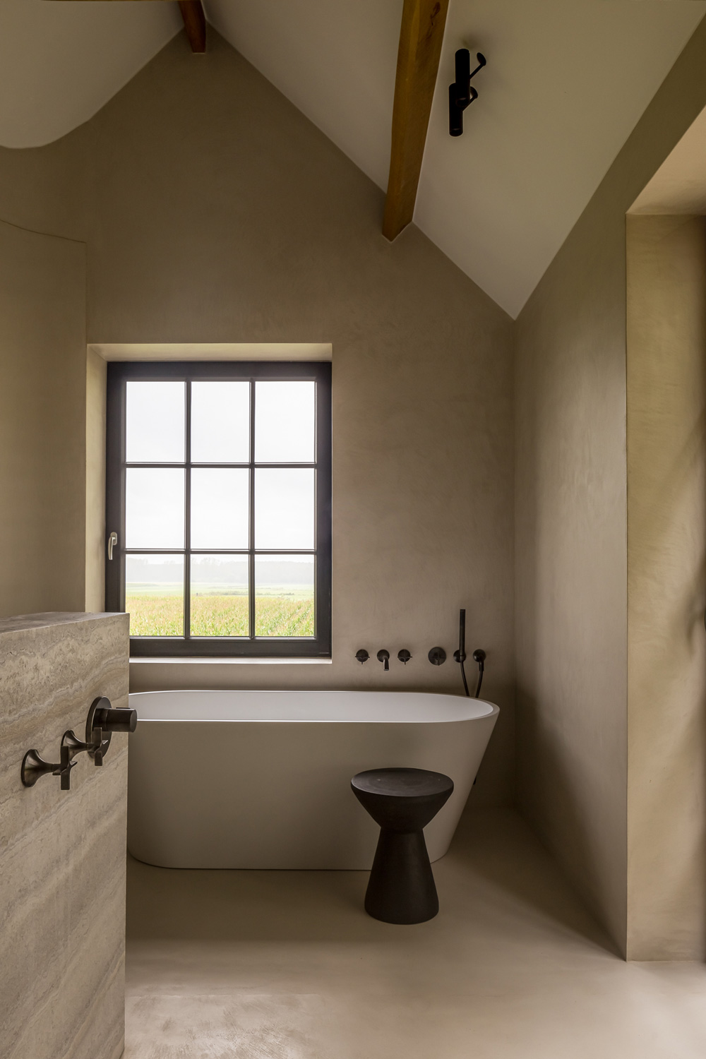 De kracht van Microtopping® komt tot uiting in alle ruimtes van deze aparte woning: we bevinden ons in Eksaarde, in België waar dit unieke woonhuis is gebouwd, ontworpen door Dennis T’jampens en Vincent De Wever. Hier vormt de neutrale uitstraling van deze cementcoating een harmonieuze verbinding met de andere materialen en zijn er ruimtes gecreëerd waarin rust, elegantie en ambachtelijk vakmanschap bepalend zijn voor de sfeer. Het project is gebaseerd op strakke, sobere ruimtes en evenwichtige verhoudingen, geïnspireerd op de typische Vlaamse landhuizen, maar met een nieuwe, moderne interpretatie.